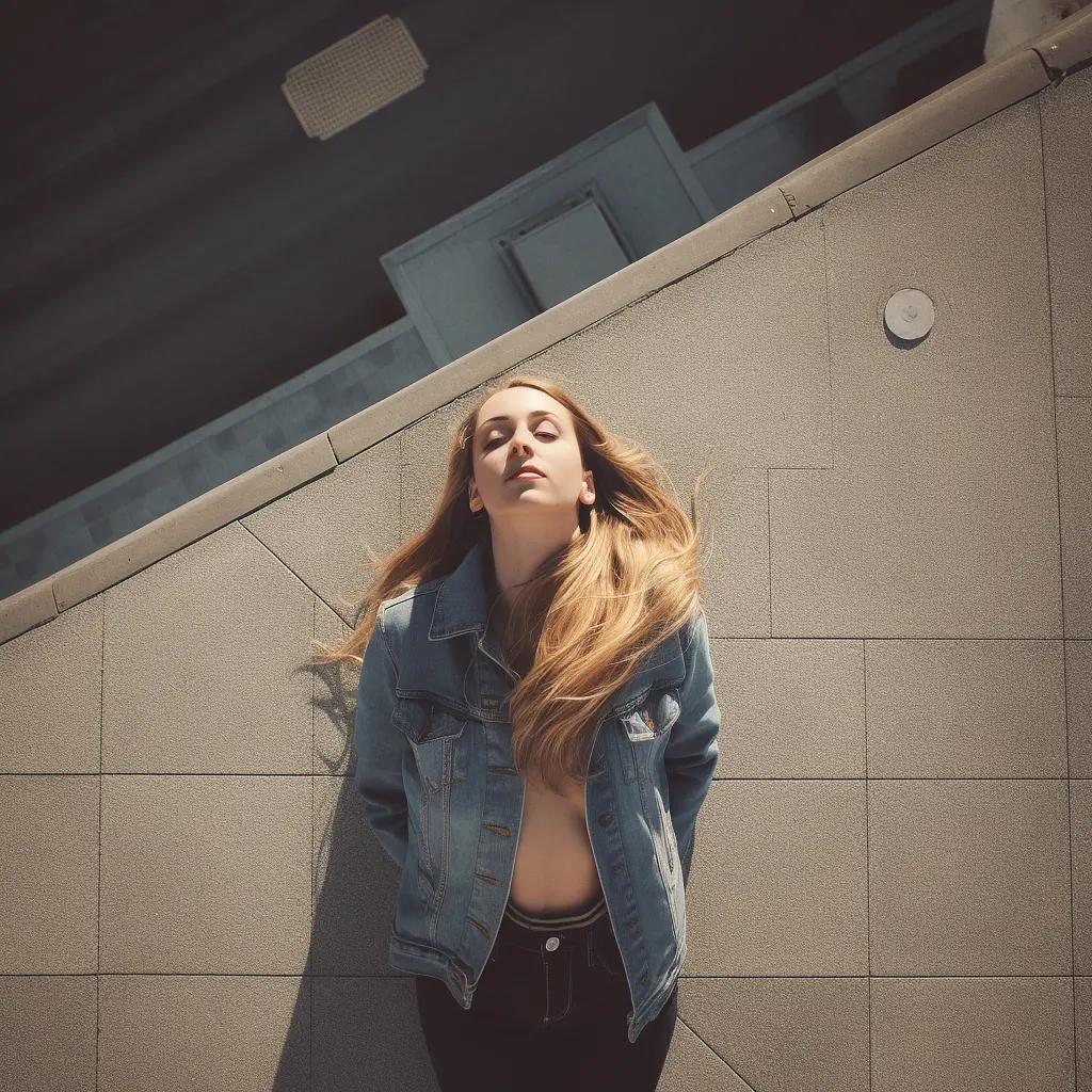 Street Style Birds-Eye-View Photo From Below of a Woman, Shot on Afga Vista 400, Natural Lighting --v 5