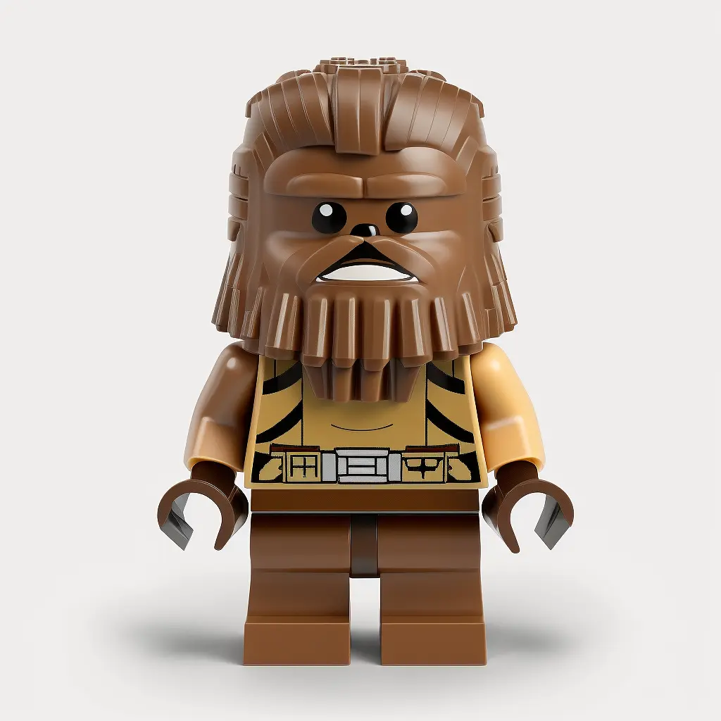 chewbacca, frontal view, centered image, minifigure, full body length character, a high-res digital design, simple iconic design, smooth edges, sharp lines, classic minifigure expression, neutral expression, customizable, wide range of colors and accessories, avatar, profile picture