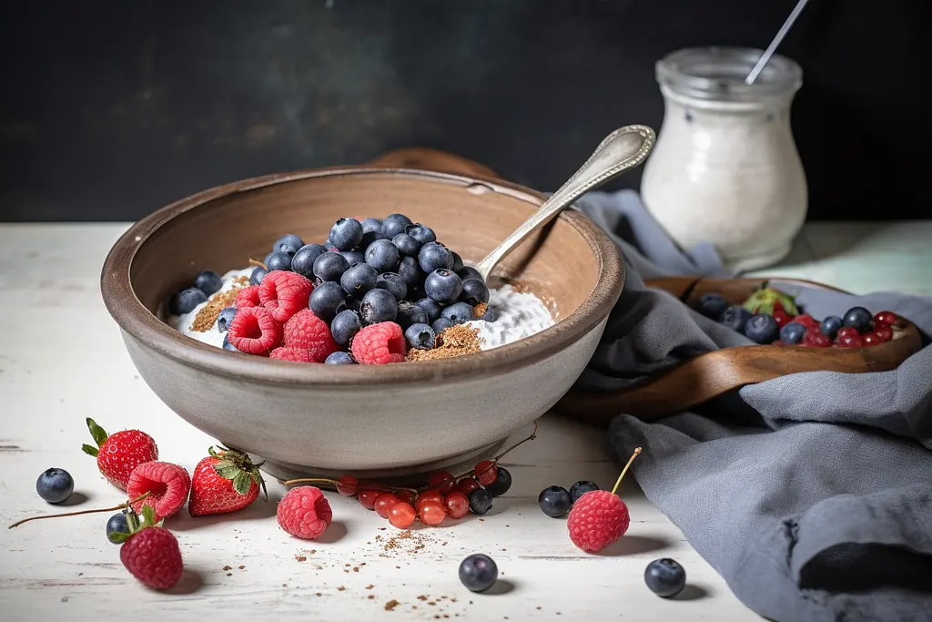 Breakfast bowl with fresh berries, --ar 3:2 --v 5