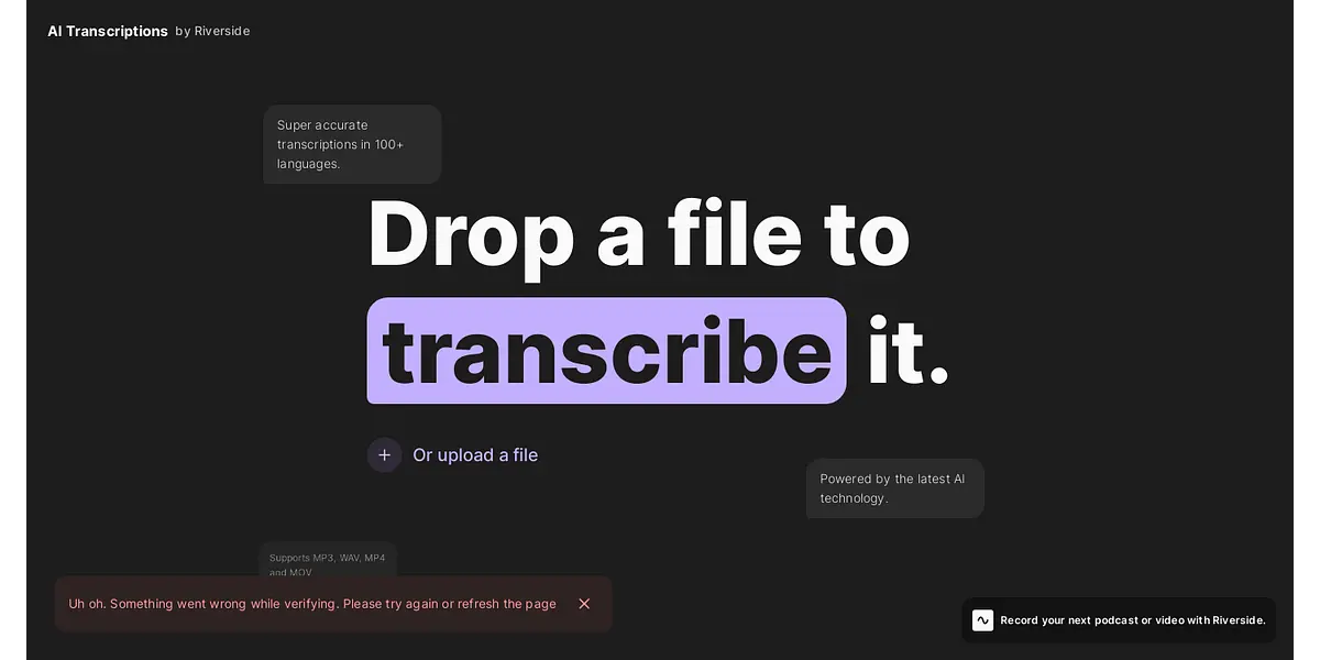 So drop your file onto the website, and in just a few minutes, you will have your transcription ready. You don't have to worry about sign-ups or any hidden fees, and Riverside's service is entirely free. Whether you are recording a podcast, or video, or just need your content transcribed, Riverside is the best way to go. You can even choose to download captions or SRT files to add to your video content, making your work more accessible to the audience.