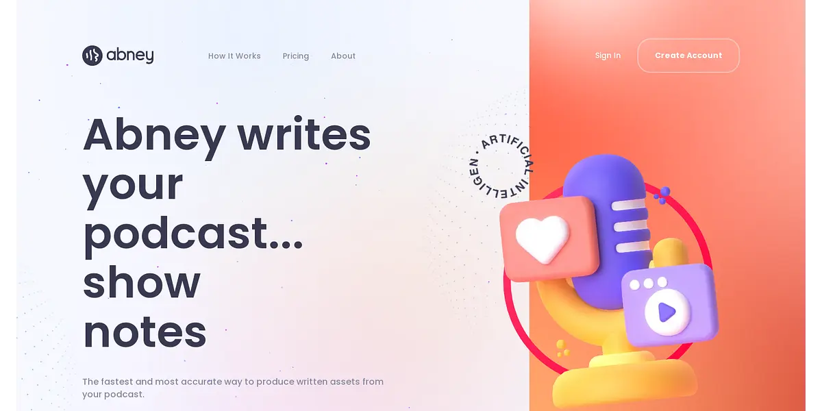 Abney is a unique platform that helps turn your podcast episodes into written assets such as show notes, titles, descriptions, and blog posts. They offer the fastest and most accurate way to produce written assets from your podcast, making it easier for you to promote your brand and engage with your audience.
