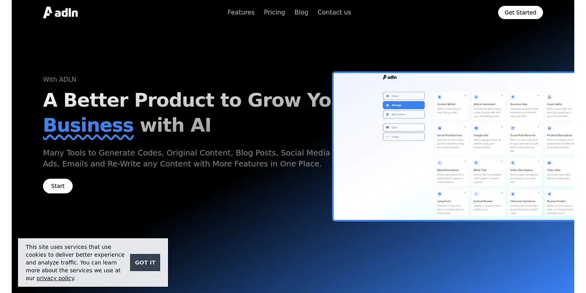 ADLN is a revolutionary AI-powered content creation platform that enables businesses and individuals to generate original content quickly and efficiently in one place. Powered by intuitive AI algorithms and natural language processing technology, ADLN provides a suite of tools designed to streamline the writing process and eliminate the need for manual content creation.