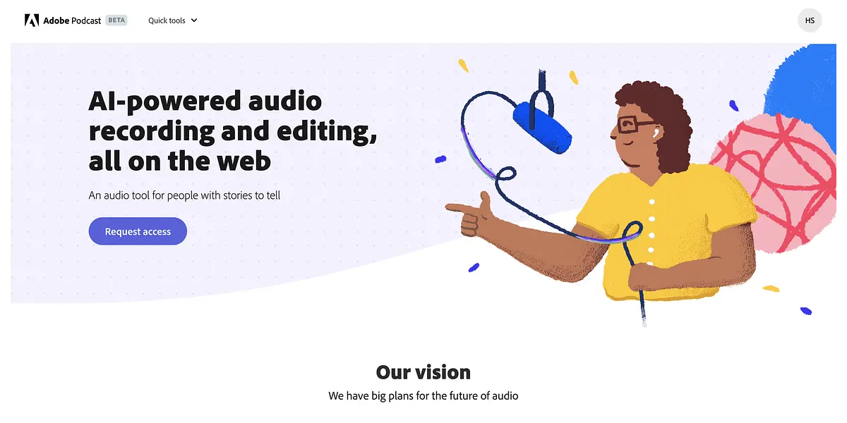 With Adobe Podcast, you can take your audio storytelling to the next level. It provides you with all the necessary tools, features, and creative freedom to make your audio content stand out. Say goodbye to hours of editing and sound engineering, and spend more time creating fantastic audio content. Request access today and see the future of audio in action.