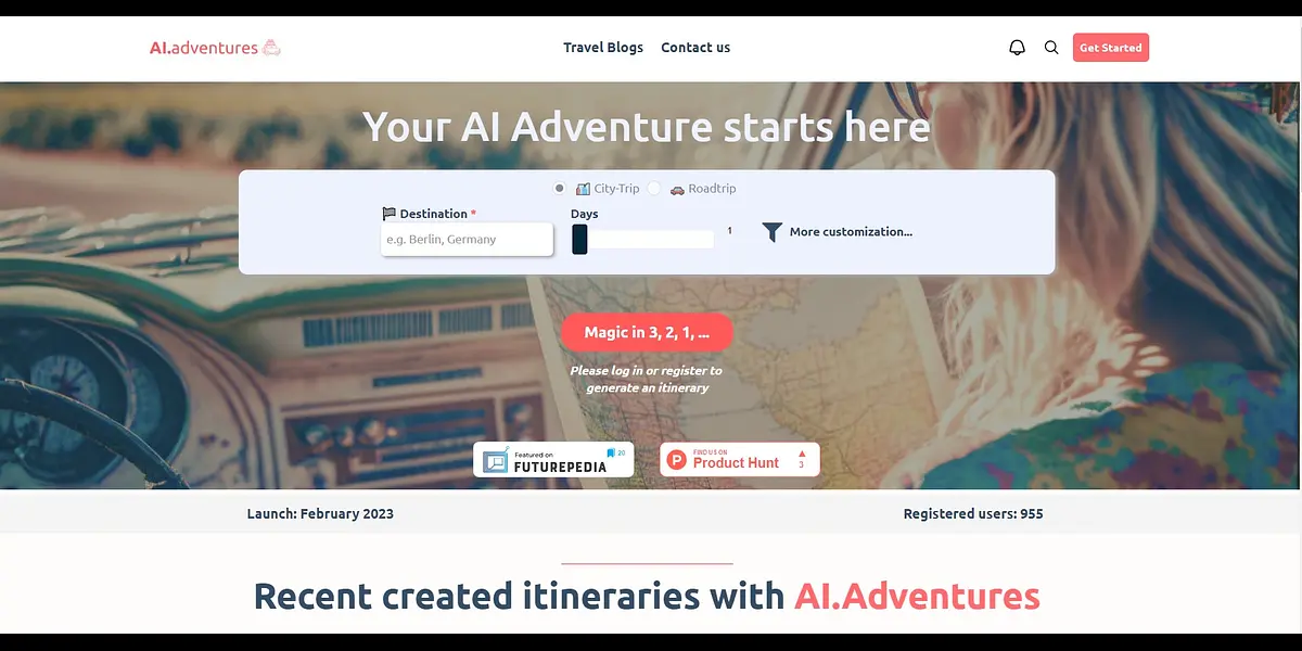 So why wait? Sign up for AI.Adventures today and make your travel dreams a reality. Our registered users, 955 and counting, have already created their personalized itineraries – what are you waiting for? Get in touch today and start your AI-powered adventure.