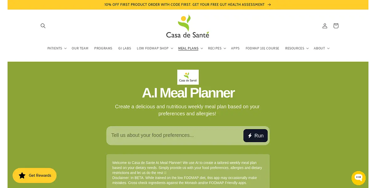 Casa de Sante provides programs, labs, and resources to improve gut health. They offer meal plans, recipes, and apps, as well as courses on low FODMAP diets. Their FODMAP elimination and reintroduction programs and food finder AI chef make tracking personal food reviews easy. Casa de Sante's mission is to empower individuals to better their overall gut health.