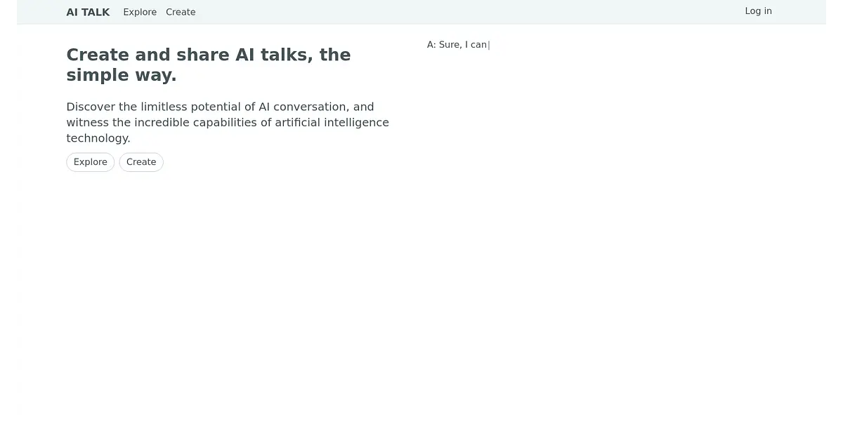 "AI Talk allows you to create and share AI talks effortlessly. Explore the potential of AI conversation and witness the incredible capabilities of artificial intelligence technology with ease."