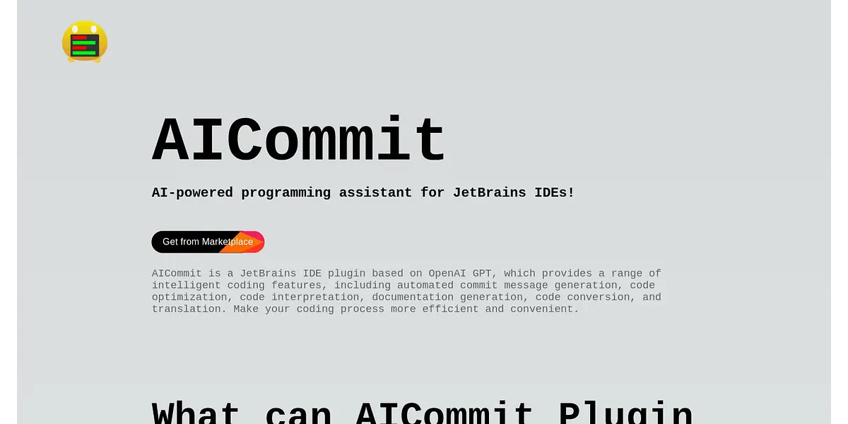 "Discover the power of AI in programming with AICommit - the JetBrains IDE plugin based on OpenAI GPT. Generate automated commit messages, optimize your code, interpret and translate, and generate documentation conveniently. Get started with AICommit today for a more efficient and streamlined coding process."