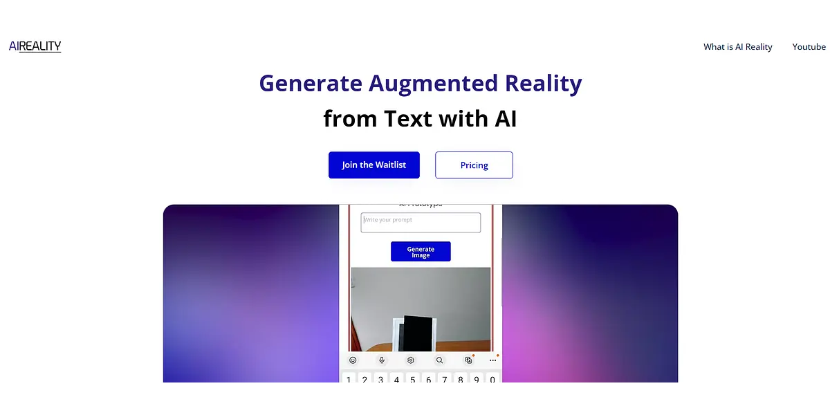 AI Reality is a platform that enables you to generate simple augmented reality prototypes using text from AI. We use the power of Stable Diffusion and Open AI to generate an AR experience in a few seconds. Their mission is to massify the use and learning of Augmented Reality through a friendly process thanks to AI.