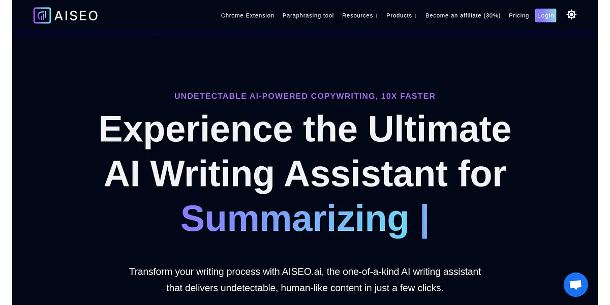 AISEO.ai is the ultimate AI writing assistant that helps to summarize and create undetectable, human-like content, 10x faster. With 26+ supported languages and adding more, AISEO.ai is suitable for entrepreneurs, writers, and marketers to transform their writing process. Get started for free and join our community of 50,000+ happy customers and experience the power of AI to grow 10x faster.