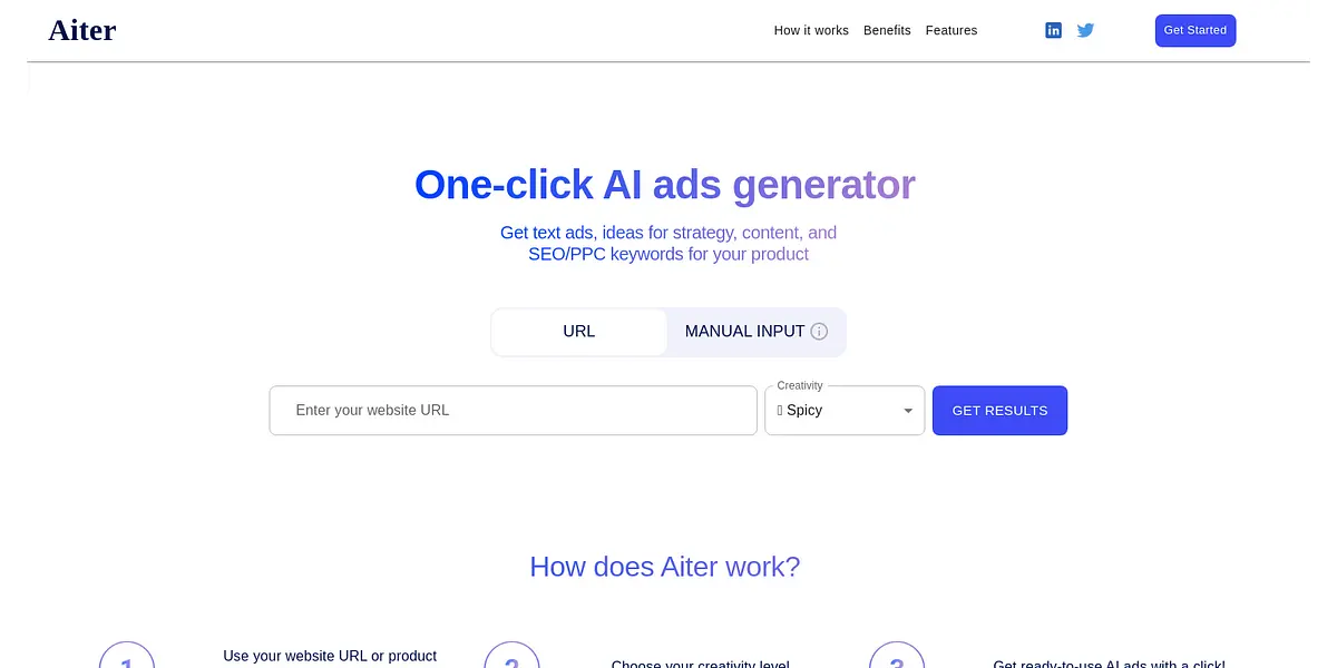 Using Aiter is simple and easy. Just enter your website URL or product description and choose your creativity level. Within seconds, Aiter will generate ready-to-use AI ads that align with your brand and meet your marketing goals. Aiter can also generate customized text ads for your business, with the ability to customize to your preference.