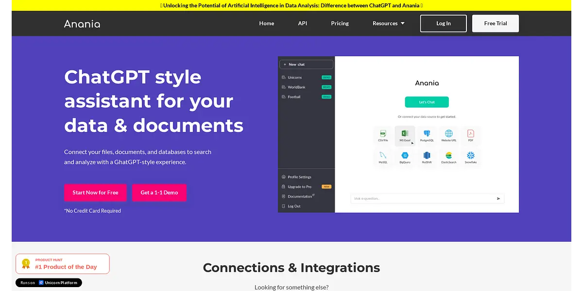 Experience the power of Anania today by scheduling a personalized demo or contacting the team for any queries or integrations. With Anania, you can unlock the potential of artificial intelligence in data analysis and empower your business needs.
