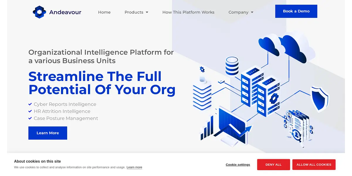 Andeavour specializes in uncovering and managing critical information patterns within and across business units. Their comprehensive product line of end-to-end AI solutions is tailored to the diverse needs of organizations and includes HR Classifying Intelligence, Cyber Analysis Operations Intelligence, and Enforcement Posture Monitor.
