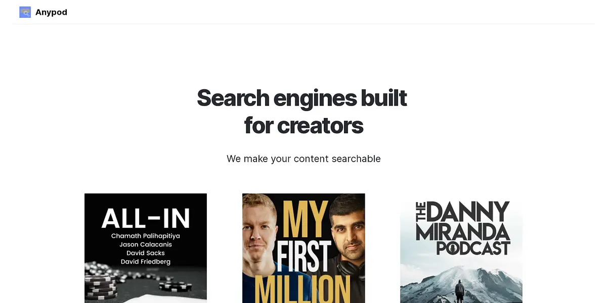"Unleashing the power of discoverability for content creators with Anypod Search."