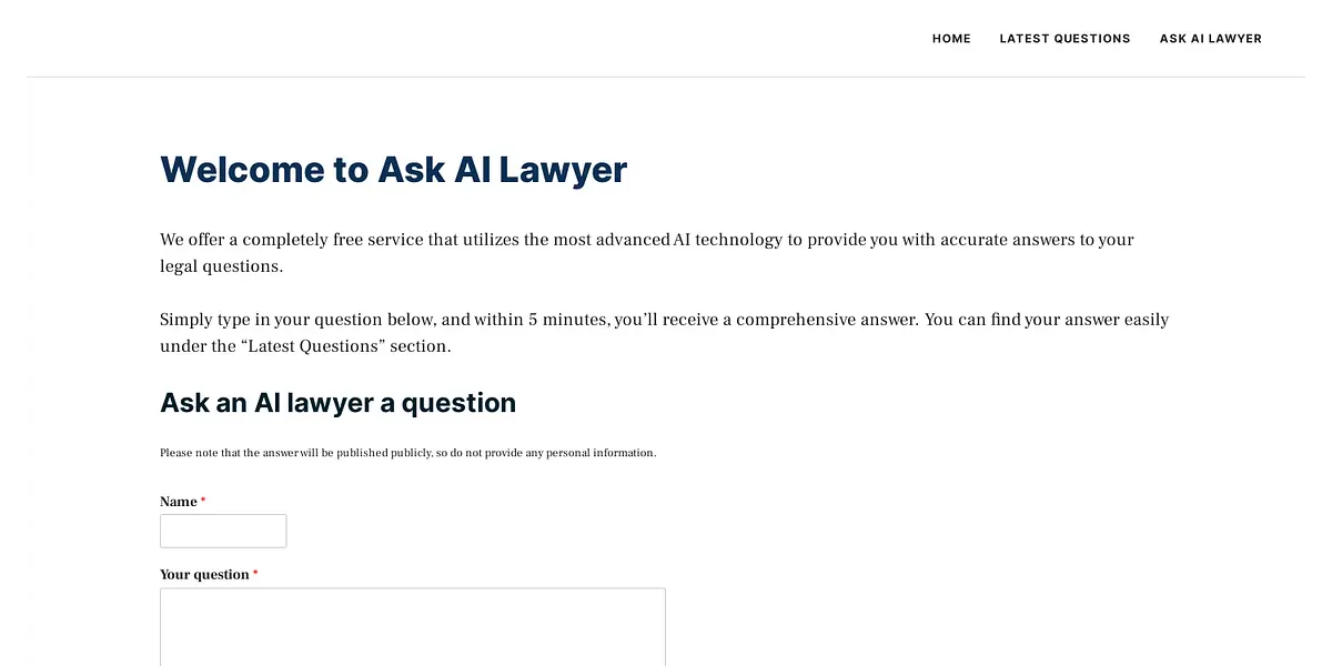Overall, Ask AI Lawyer is a straightforward, user-friendly platform that allows individuals to get immediate legal advice from the comfort of their own homes. Experience accurate legal answers in minutes with Ask AI Lawyer.