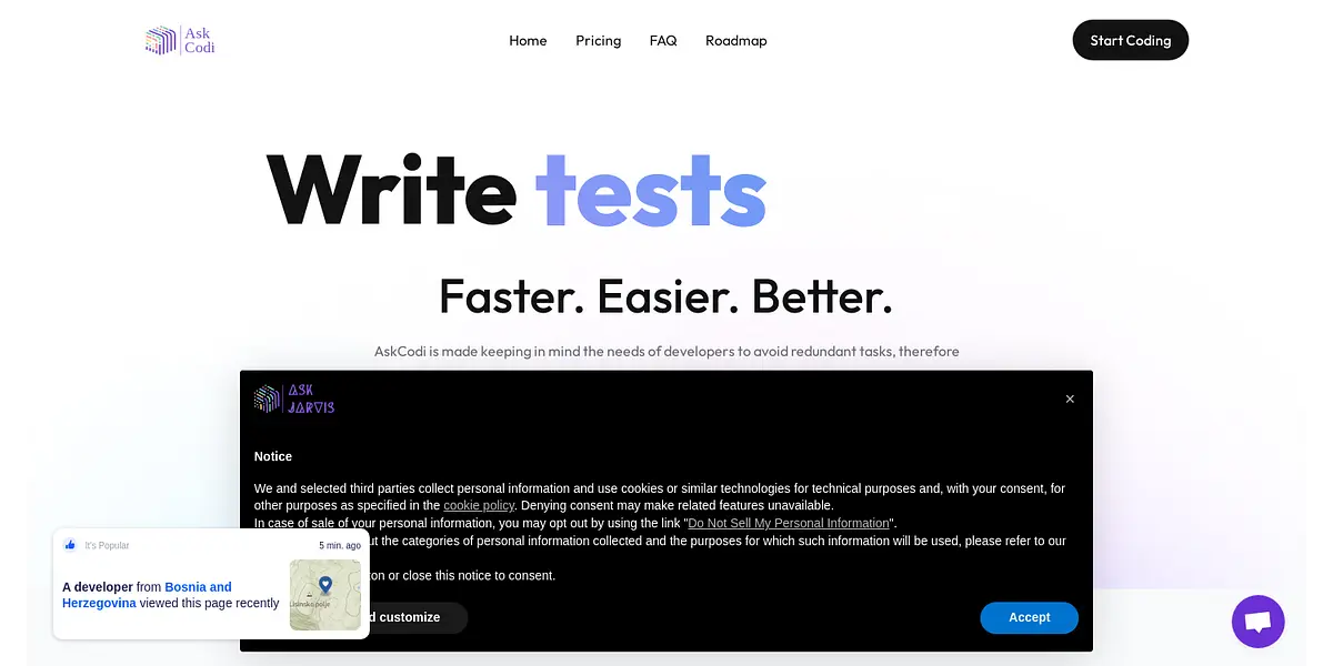 Our vision is to have a complete development solution where you just ask Ask Codi what to do, and Codi does the rest for you. You can subscribe now to get updates about AskCodi and ways to code better. Try coding of the future, today with AskCodi!