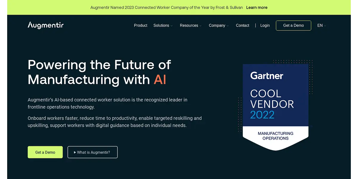 Augmentir is a connected worker solution that digitizes all processes affecting frontline workers, from hire to retire, with AI-based smart insights that enable targeted reskilling and upskilling, reduce time to productivity and provide individualized guidance and support at the point of work.
