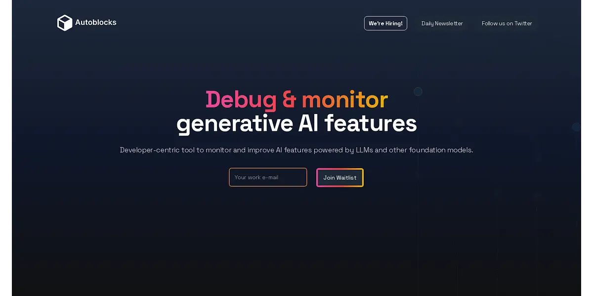 Autoblocks is an innovative platform that empowers developers to revolutionize their AI development process. At Autoblocks, we believe that product engineering teams are at the forefront of unlocking the full potential of generative AI. They are the best-equipped teams to integrate these new capabilities into existing software products, and their proclivity to deploy, iterate, and improve is ever more pertinent going forward. As software becomes increasingly malleable, engineering teams will be the driving force behind turning that malleability into delightful and hyper-personalized user experiences.