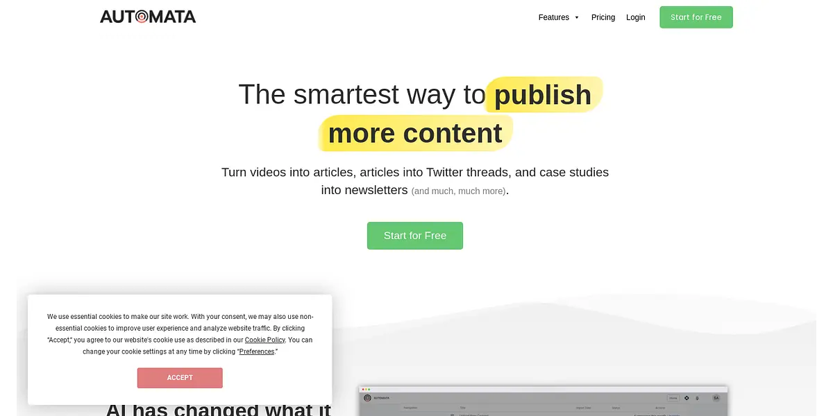 Automata AI helps you turn videos, articles, case studies and more into a variety of formats, making content creation and distribution easier and more efficient