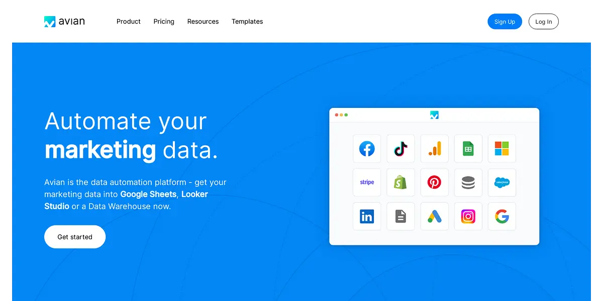 Avian is the ultimate solution for automating your marketing data. Tired of copy-pasting data? Avian offers a state-of-the-art data automation platform that brings all your marketing data to Google Sheets, Looker Studio or a Data Warehouse in no time. With Avian, you get to extract and analyze thousands of dimensions and metrics from your marketing data twice as fast. The platform supports popular connectors such as Google Analytics, Google Ads, Facebook Ads, Facebook Insights, Instagram Insights, TikTok Ads, QuickBooks, LinkedIn Ads, and YouTube Analytics. With Avian, you can build interactive dashboards, create automated copies of your data, stop copy-pasting data manually, analyze one or more campaigns, extract more in-depth data from Ads, share specific data with your team, get customized ad performance data, and create conversion funnels.