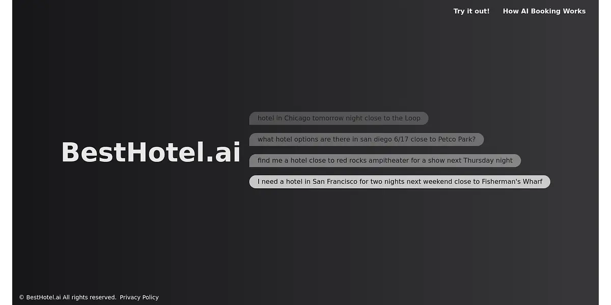 So why waste time searching for hotels manually when you can let our AI-powered platform do the work for you? Try BestHotel.ai today and discover a better way to book your next stay.