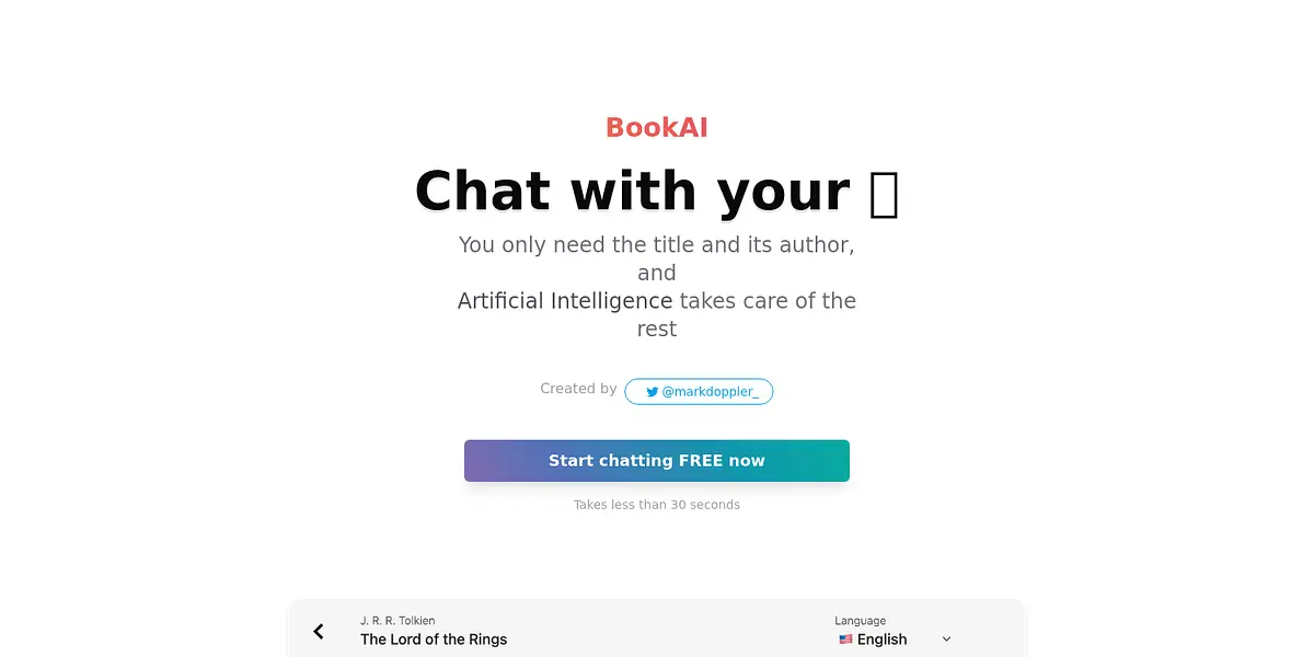 BookAI is a platform that allows you to chat with your books using only their title and author. With the power of artificial intelligence, BookAI takes care of the rest, allowing you to add new books to your library and even chat with them in over 30 languages. Experience the full power of GPT-3 and GPT-4 with BookAI and start chatting for free today in less than 30 seconds.