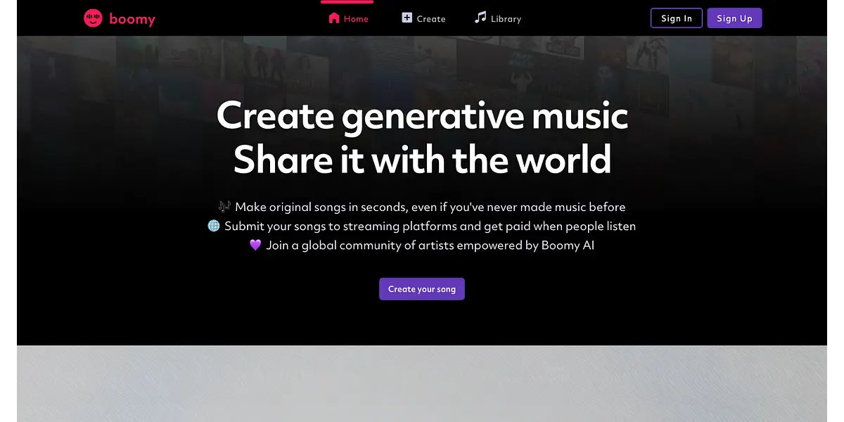 Boomy AI allows you to make original songs in seconds, even if you have never made music before. You can create generative music and share it with the world by submitting your songs to streaming platforms and get paid when people listen.