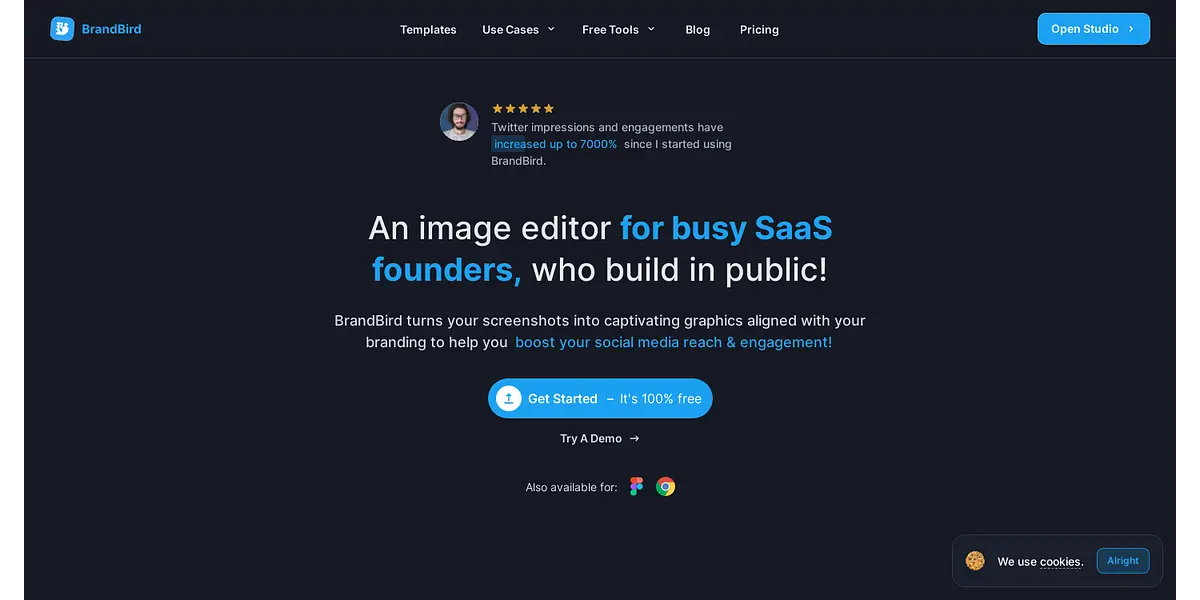 In addition to its powerful features, BrandBird also offers third-party integrations, making it easy to incorporate into your existing workflow. Customers have used it to create graphics for Twitter, landing pages, and even LinkedIn, with one customer's first post garnering 20K views. With over 225k followers, another customer praised BrandBird for speeding up their design process.