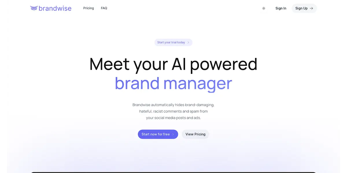 Brandwise is the ultimate AI-powered brand manager that effectively shields your brand from hateful, damaging, racist comments, and spam on your social media posts and ads. With customized keywords and sentiment analysis, Brandwise automatically moderates comments in many languages and identifies comments that demand a response. Get started with the 7-day trial.