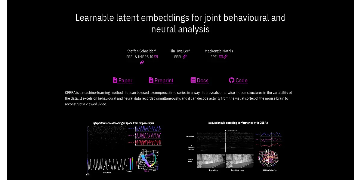 Overall, CEBRA is a valuable tool for scientists and researchers looking to uncover latent embeddings in their behavioral and neural data. Its accuracy, versatility, and label-free nature make it a top choice for hypothesis-driven or discovery-driven analysis.