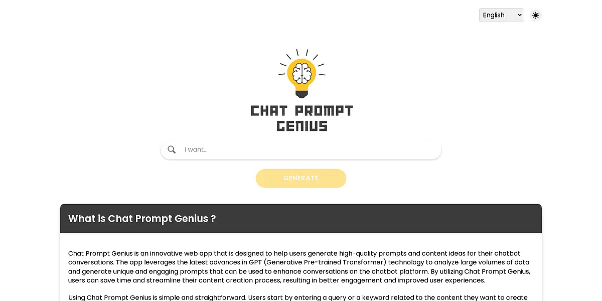Are you looking to improve your chatbot conversations and drive better engagement with your audience? Look no further than Chat Prompt Genius, an innovative web app that is designed to help you generate high-quality prompts and content ideas for your chatbot conversations.