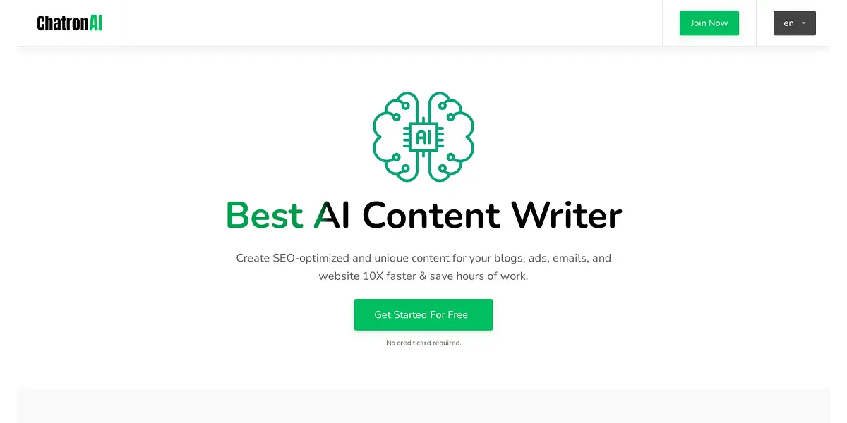"Join ChatronAI and save hours of work by creating unique and SEO-optimized content for blogs, ads, emails, and website with our 60+ templates. Get started for free, no credit card required."