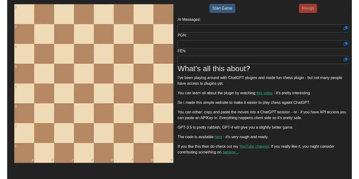If you find the experience of playing chess against ChatGPT enjoyable and want to support the creator of the plugin and website, they have a Patreon page where you can contribute. They also have a YouTube channel where they showcase their other projects.