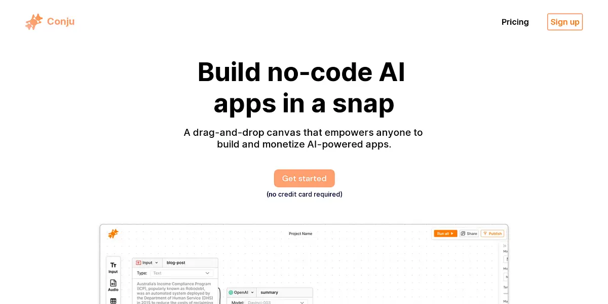 Build and monetize AI-powered apps without code with Conju Pricing.