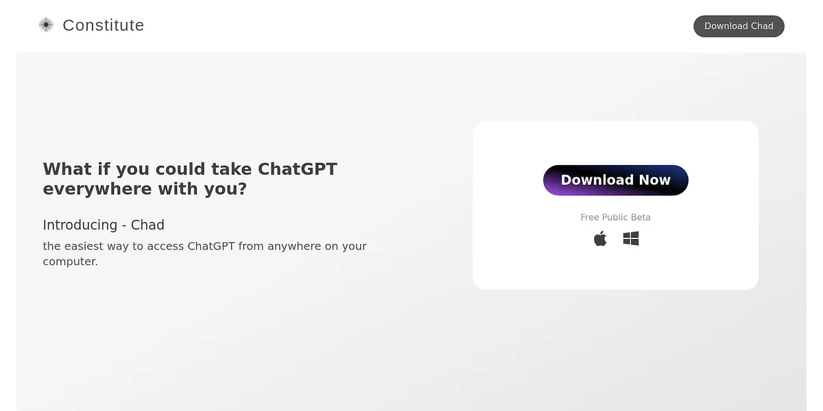 Chad is the newest ChatGPT tool to easily access the AI chatbot from anywhere on your computer. Download it for free today and experience quick and accurate search results at your fingertips.