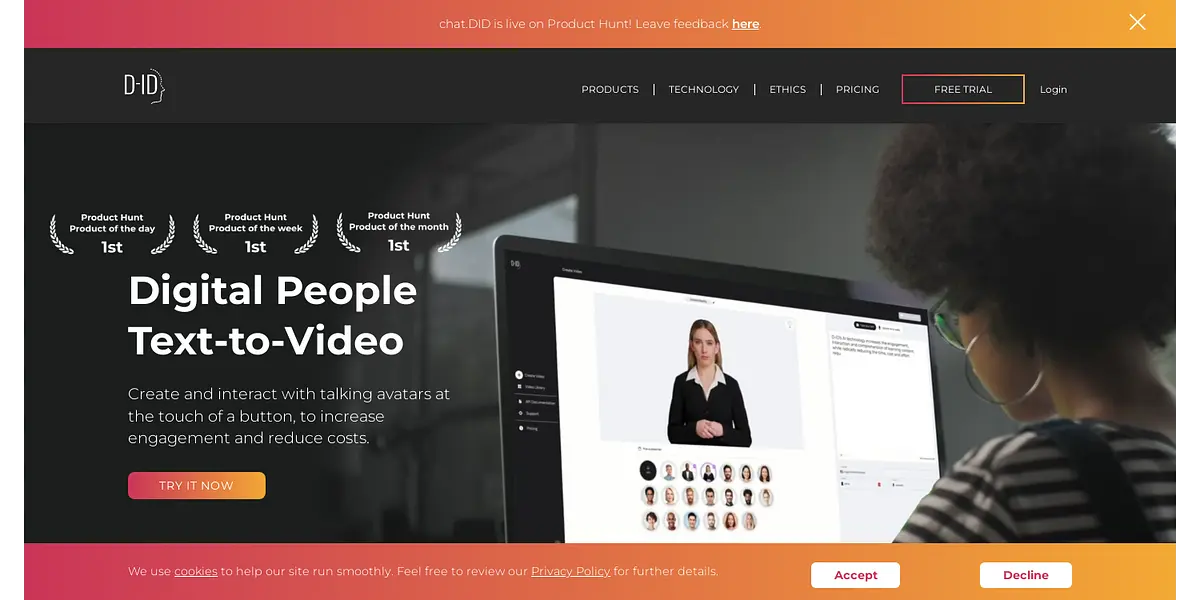 D-ID is at the forefront of video production, leveraging its Generative AI technology to enable users to create personalized and engaging videos using just AI. The platform is used by creators, leading marketing agencies, production companies, and social media platforms around the world, who are all looking for innovative and cost-effective ways to produce video content.