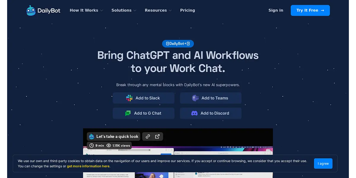 And the best part about DailyBot+ is that it's easy to use and integrate with your favorite work apps. You can add DailyBot+ to Slack, Teams, G Chat, and Discord, and start enjoying its benefits right away.