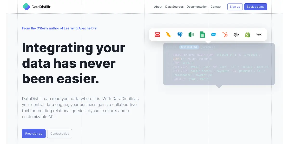 DataDistillr is a centralized data engine that simplifies and streamlines data integration and analysis for businesses. With DataDistillr, you can connect to hundreds of data sources without moving your data and write standard SQL queries to access and analyze all your data. Collaborate with your team, create visualizations, and build and deploy via an API.