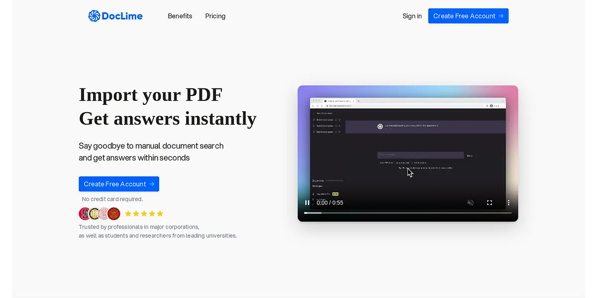 Have you ever spent hours searching for specific information in a PDF document, only to end up empty-handed? Doclime, an AI-powered document search tool, is here to change that. With Doclime, you can ask questions and get instant answers from your PDFs, reducing your document search time from hours to minutes.