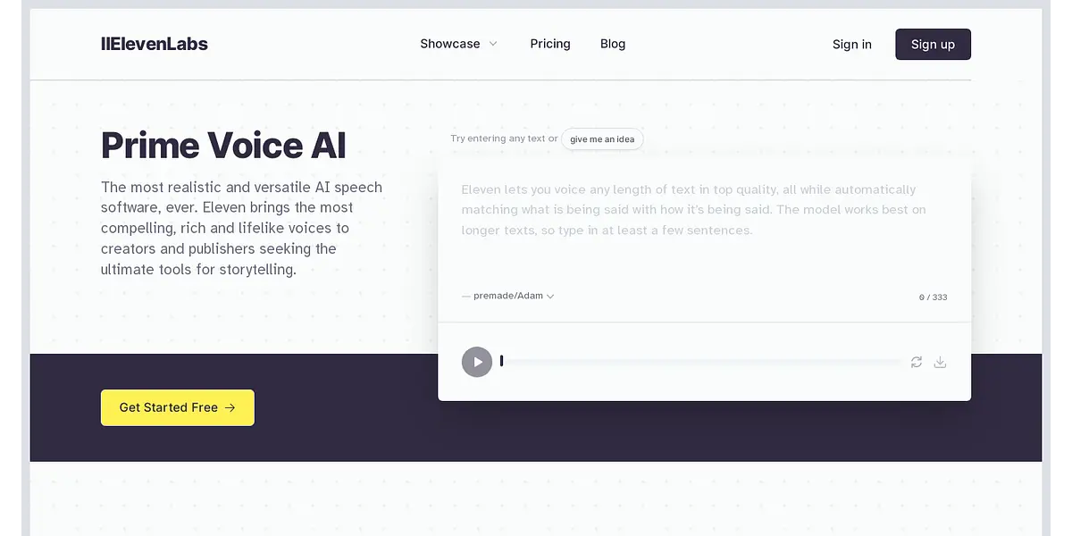 ElevenLabs presents Prime Voice AI, the deep learning model that brings realistic and versatile human-like voices to storytellers and publishers. With Prime Voice AI, users can generate top-quality spoken audio in any voice and style imaginable, expanding their audience and enhancing their creative projects. This advanced and multipurpose AI speech tool sets a new standard for text-to-speech (TTS) models by rendering human intonation and inflections with unprecedented fidelity and adjusting delivery based on context.
