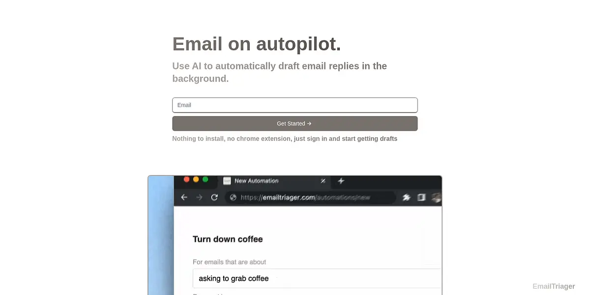 Are you tired of endlessly scrolling through your inbox, drafting replies and managing your email? Look no further than EmailTriager, the AI email assistant that streamlines your email communication with ease. With nothing to install or download, this app uses natural language processing to generate email drafts in the background, keeping your inbox organized and freeing up time for other tasks.