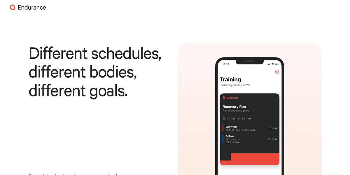 Endurance is an iPhone and Apple Watch app that automates training planning for athletes. With machine learning and workout data analysis, it generates personalized, infinite training plans according to race goals and health data.