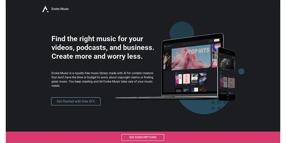 Evoke Music is a royalty-free music library, powered by AI, to help content creators find the perfect music for their videos, podcasts, and business projects. With over 60,000 tracks and sound effects to choose from, Evoke Music ensures that you keep creating without worrying about copyright claims or finding great music.