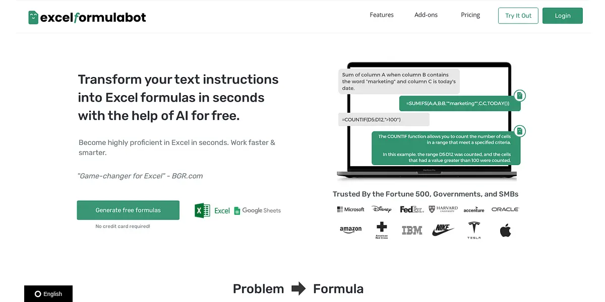 Need an easy way to turn text instructions into Excel formulas for free? Check out Excel formula bot! Using AI, it quickly generates formulas for problems of all levels, from easy averages to complex extractions. Trusted by governments and SMBs, this tool is a game-changer for anyone looking to work smarter and faster in Excel and Google Sheets.