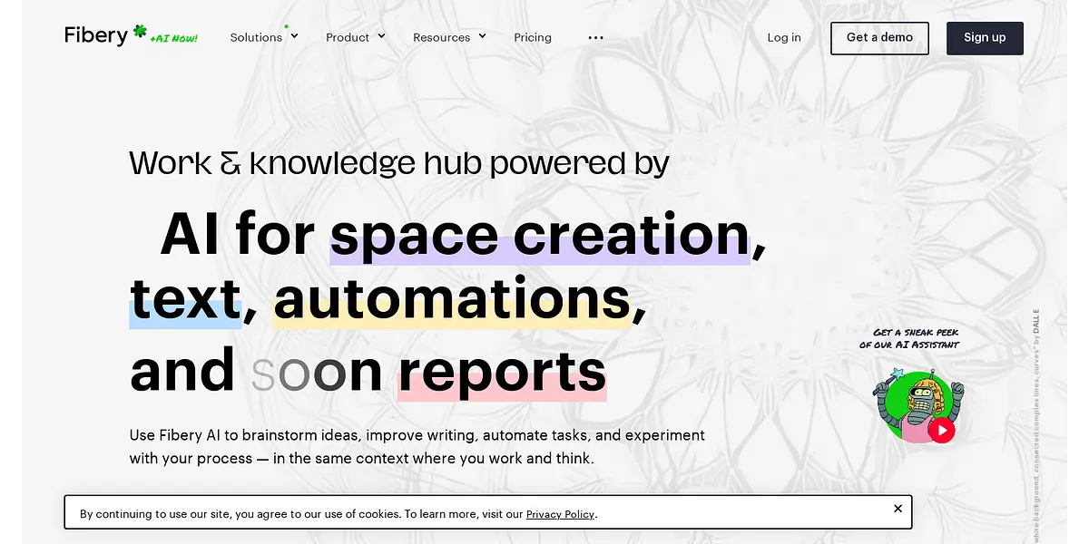 Fibery AI is a work and knowledge hub that uses AI for space creation, text automation, and tasks delegation. Experiment with your process, improve your writing, and brainstorm ideas without leaving the context where you work and think. With Fibery's AI Assistant, you can automate boring repetitive tasks, extract data, and summarise meeting notes. Sign up now and get a sneak peek of Fibery AI.