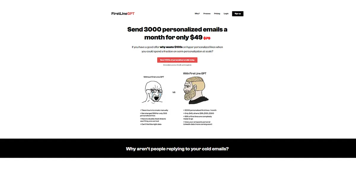 Get immediate access and send thousands of personalized emails at a fraction of the cost with this service, boosting your open rates, reply rates, and sales opportunities. The platform uses advanced Chat GPT prompts and processes to generate personalized first lines for your prospects, saving you hours of manual work.