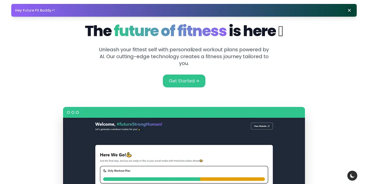 Get ready to level up your fitness game with Future Fit Buddy! Our AI-powered personalized workout plans will help you unleash your fittest self.