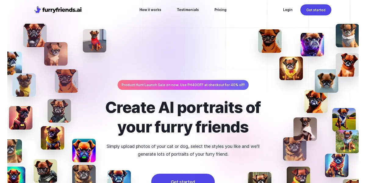 FurryFriends.ai allows you to generate AI portraits of your pets by simply uploading their photos and selecting the styles you like. Choose from over 27 different art styles to create unique and adorable portraits of your furry friends. With three packages to suit your needs and budget, starting from as low as $6.39, FurryFriends.ai is the perfect place to immortalize your pet's cuteness.