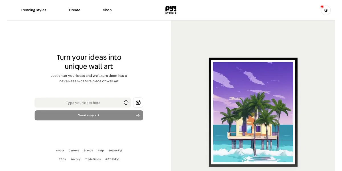 Create personalized art pieces like never before with Trending Styles Create Shop. Simply enter your ideas and we'll turn them into unique wall art that's sure to impress. Try it out now!