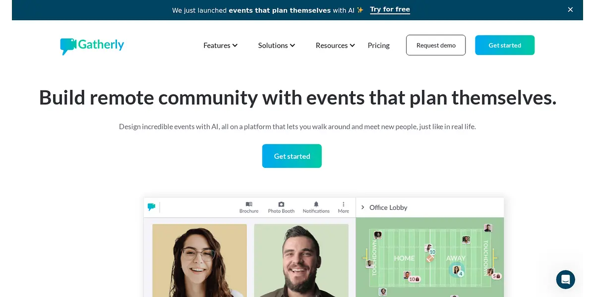 Gatherly aims to create an immersive and interactive experience that replicates in-person interactions, with AI-powered booths to engage attendees and customizable maps to make the experience memorable. Thrive Scholars, for example, used Gatherly for a 300+ person college fair, and Gatherly helped them connect hundreds of students of color with top colleges. Plus, with the addition of a backstage, Gatherly's hosts can run a fully-managed broadcast for their events. You can host your next event on Gatherly and experience the difference firsthand.