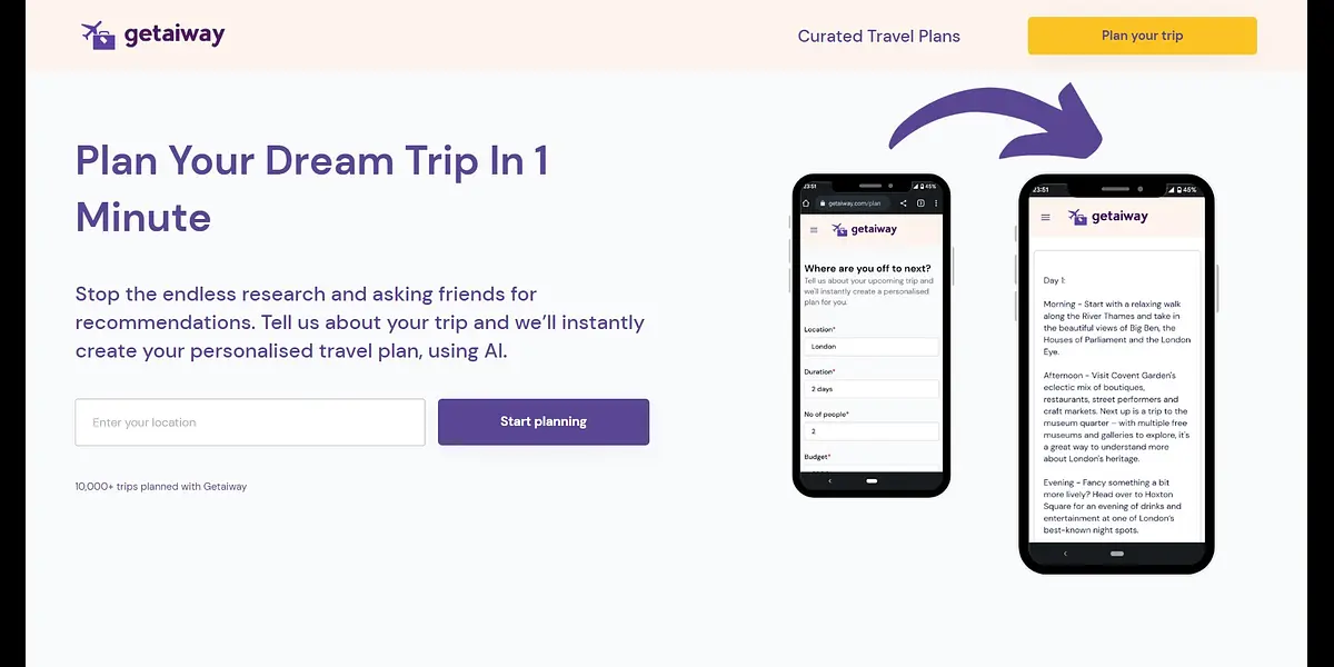 In conclusion, planning your dream trip has never been easier. Visit Getaiway, enter your preferences, and let us take care of the rest. Your perfect travel plan is just a click away.